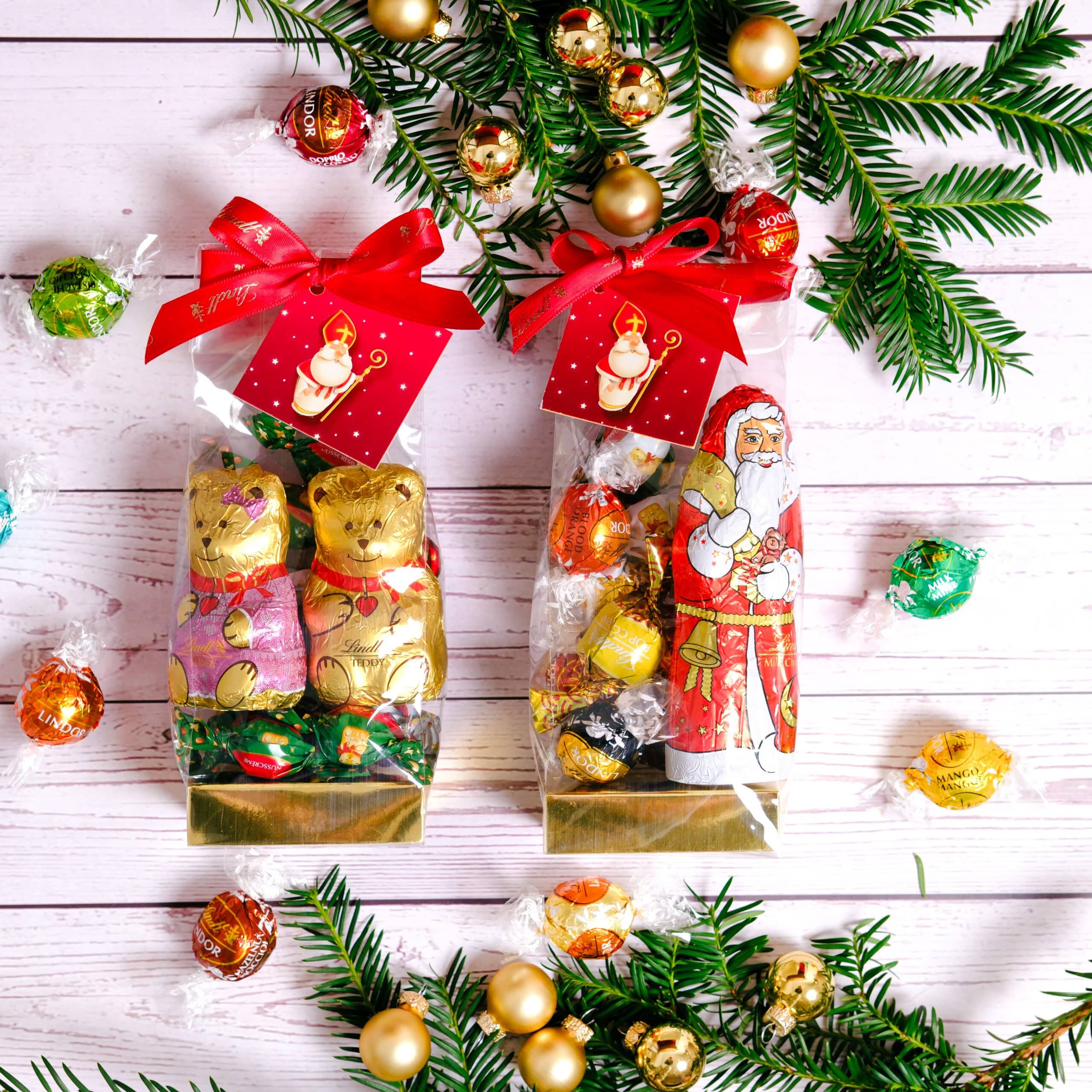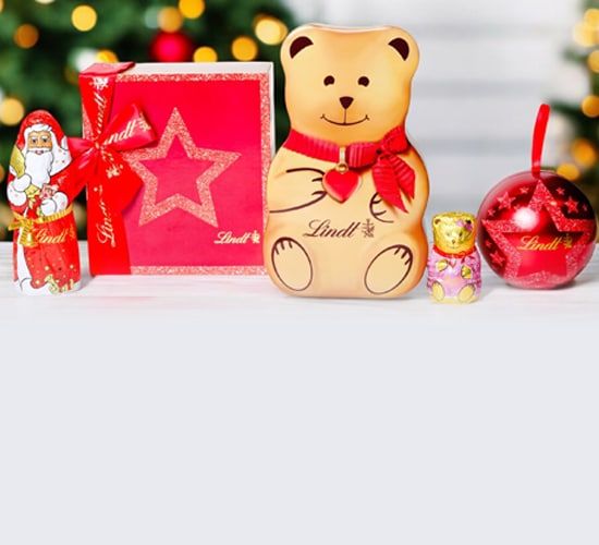 Créez une boîte cadeau personnalisée, une boule de Noël garnie, ou la boîte métallique Teddy Lindt, entièrement selon vos envies.